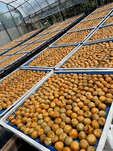 本年度、収穫した梅干です。あまりにも猛暑が続きますので軟かく仕上げるため 弊社はお盆を過ぎて天日干しします。昨年に続き、不作の上4月の雹被害もありましたが、畑から無事収穫されて美味しい梅酢に浸かっている梅干しを眺めると貴重な一粒一粒です。又皆様の食卓にお届けいたします。